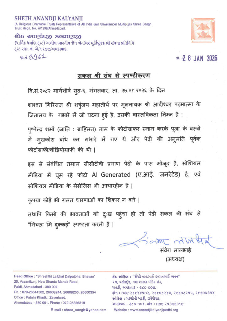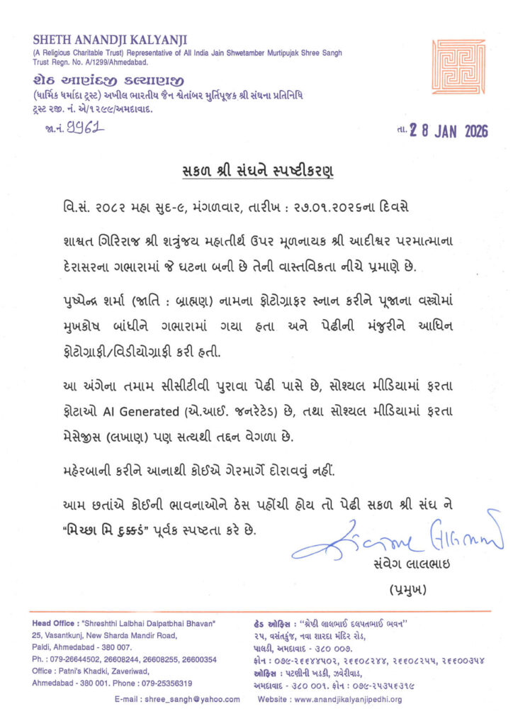 પૂજ્ય દાદાજીની ઉત્કૃષ્ટ આંગીની તિથિ મળવા માટે વિનંતિ પત્ર